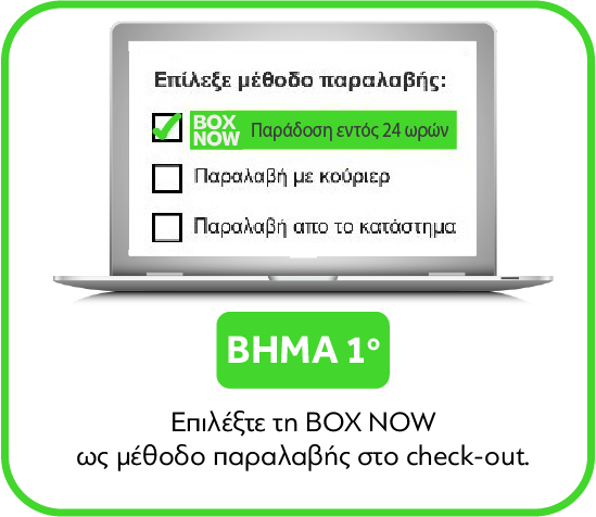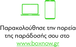Μπορείτε να παρακολουθήσετε την παραγγελία σας μεταβαίνοντας στο www.boxnow.gr. Παραλαμβάνετε το δέμα σας σύμφωνα με το πρόγραμμά σας, 24/7!